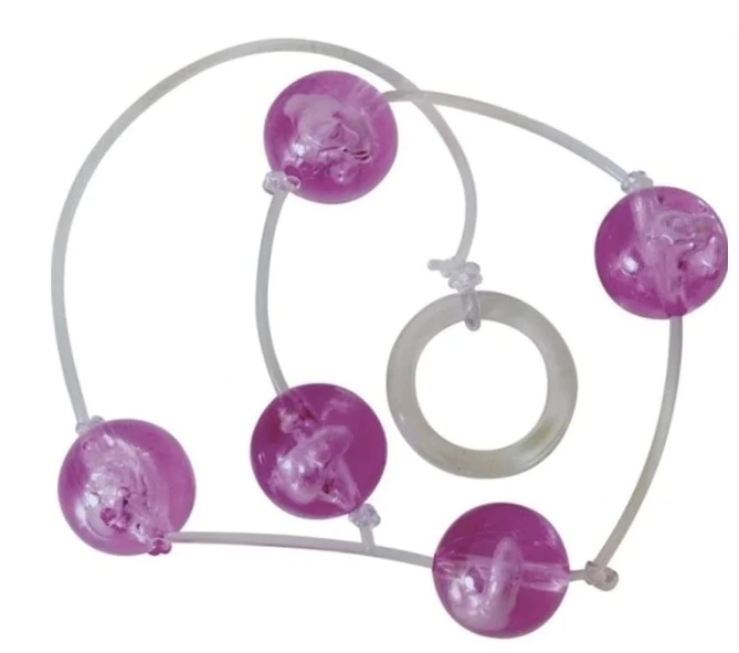 Bolinhas Tailandesas Média, são 5 bolinhas feitas de plástico rígido ligadas por resistente fio de silicone com alça para facilitar o manuseio.